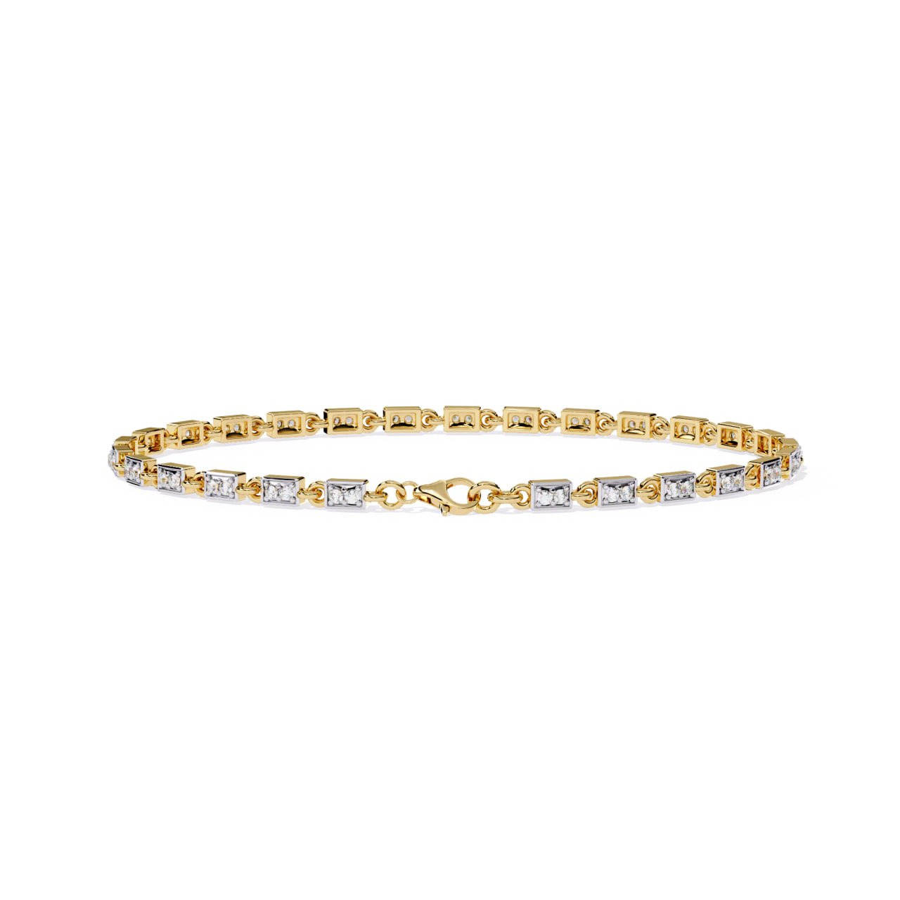 SKU : B016The Classic Square-Link Diamond Tennis Bracelet is a timeless fine jewelry essential crafted for everyday elegance and lasting brilliance. Featuring a continuous row of square-shaped gold links, each adorned with a precisely set round diamond, this bracelet delivers a refined balance of structure and sparkle. Its flexible link construction ensures a comfortable fit around the wrist, while the secure lobster clasp provides confidence for daily wear. Designed with understated luxury in mind, this bracelet transitions effortlessly from casual sophistication to evening elegance.