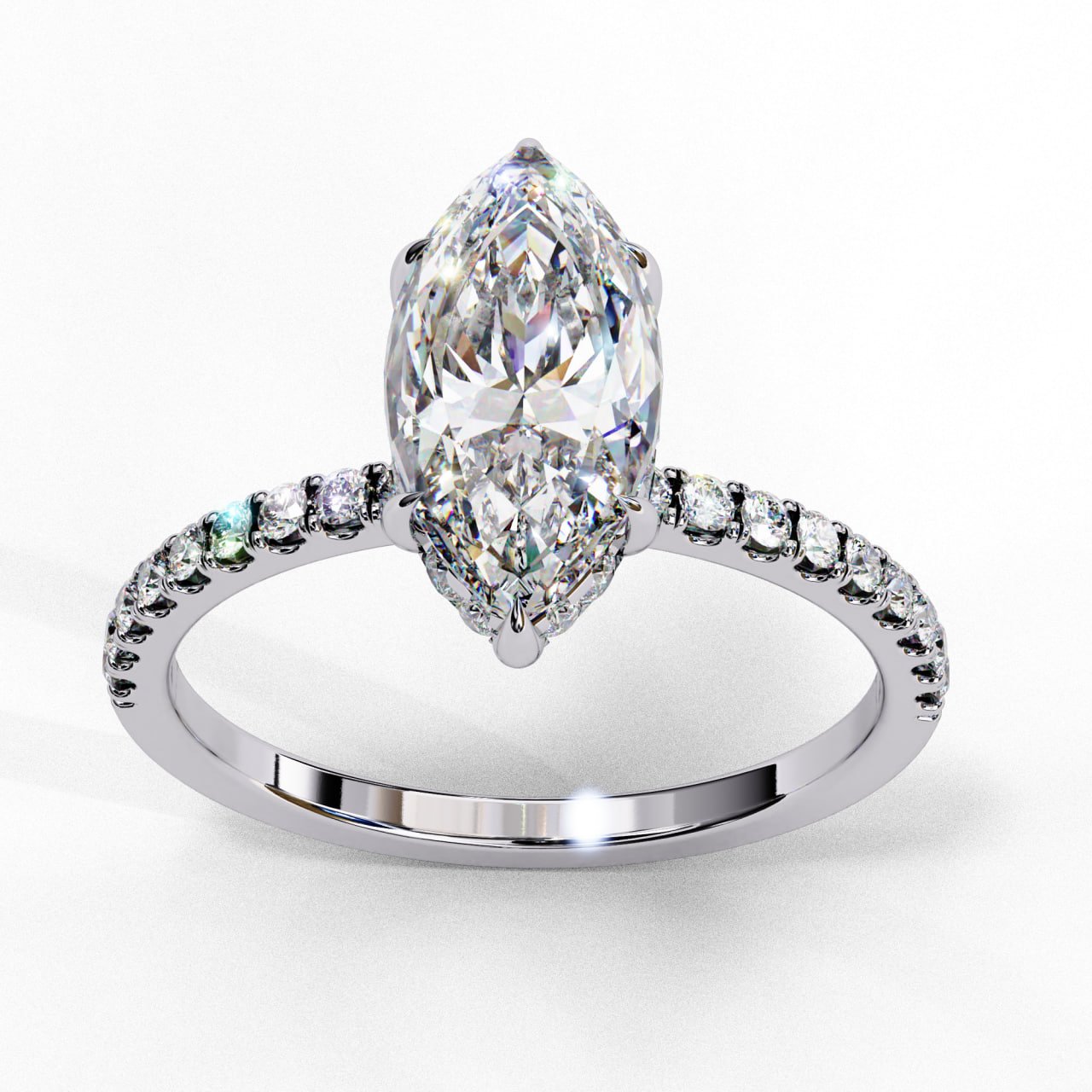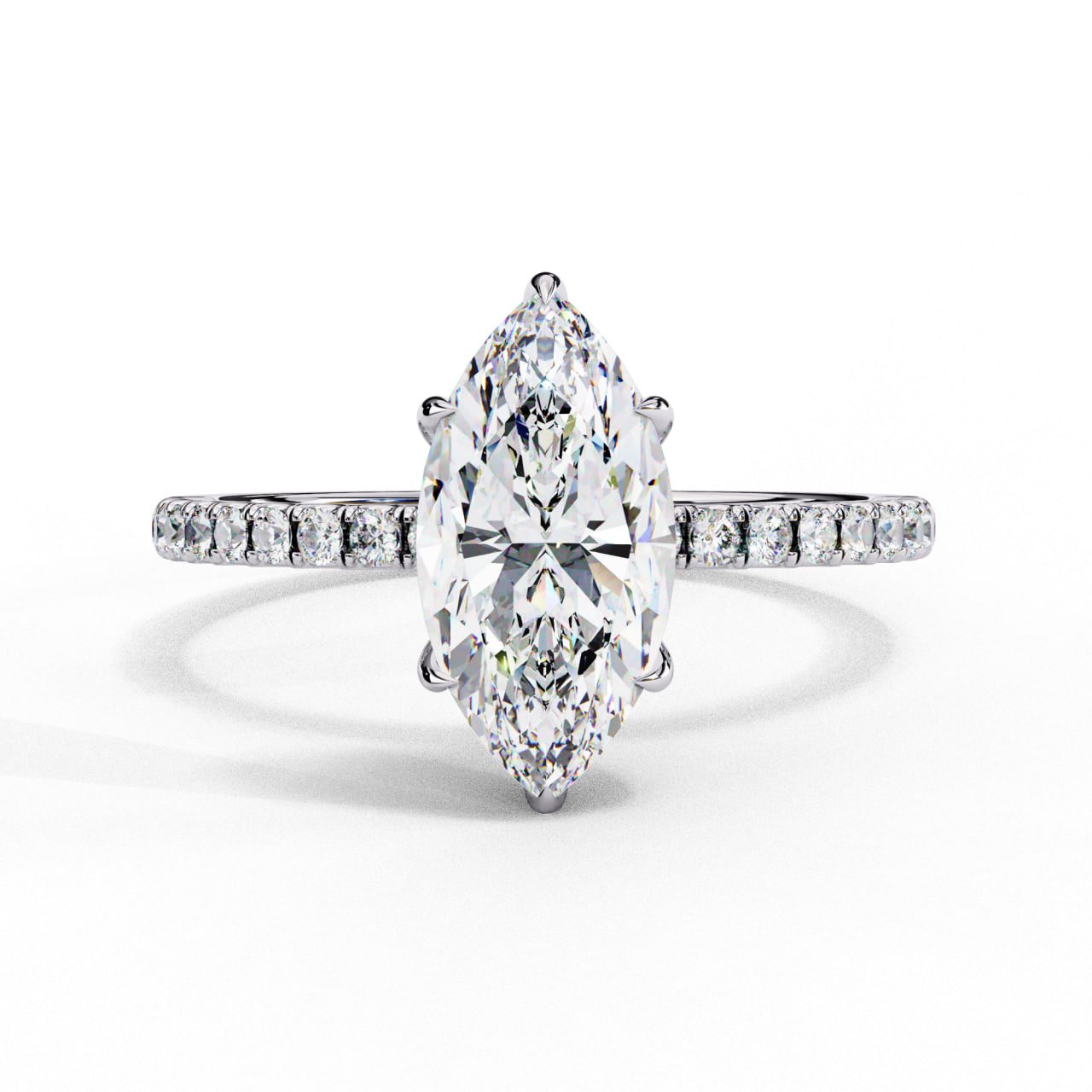 SKU : R-006This elegant marquise diamond engagement ring showcases timeless beauty with a modern touch. Featuring a striking marquise-cut center diamond secured in a refined prong setting, the ring is enhanced by a delicate diamond-studded band that adds brilliance from every angle. Crafted with precision, this design offers a perfect balance of sophistication, sparkle, and everyday comfort—ideal for engagements or special milestones.