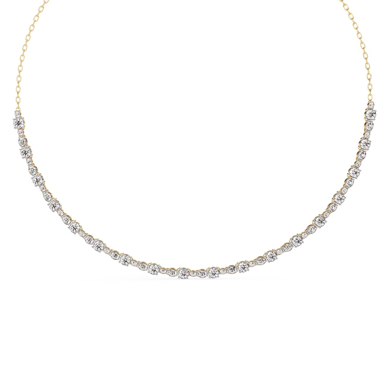 SKU : NK006Gracefully designed for timeless elegance, this Diamond Line Necklace showcases a continuous row of precisely set round diamonds that flow smoothly along the neckline. Crafted with fine craftsmanship, the necklace features evenly spaced diamond stations secured in a refined bezel-style setting, creating a delicate yet luxurious appearance. The minimalist design makes it perfect for everyday sophistication as well as special occasions. Lightweight, comfortable, and versatile, this necklace can be worn solo for a subtle statement or layered with other pieces for a contemporary look.