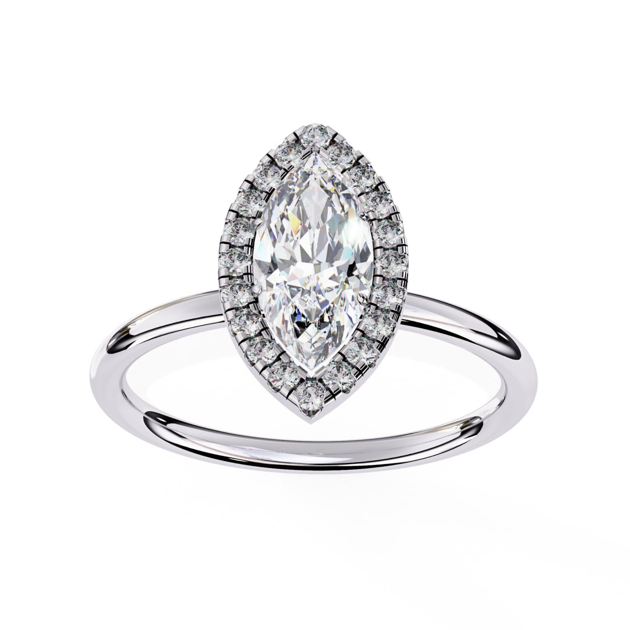 SKU : R117This elegant Marquise Halo Diamond Ring features a striking marquise-shaped center diamond, beautifully framed by a sparkling halo of round brilliant diamonds. Designed to elongate the finger and maximize brilliance, the slim polished band enhances the overall sophistication of the ring. Perfect for engagements, anniversaries, or luxury gifting, this timeless design blends modern elegance with classic charm.