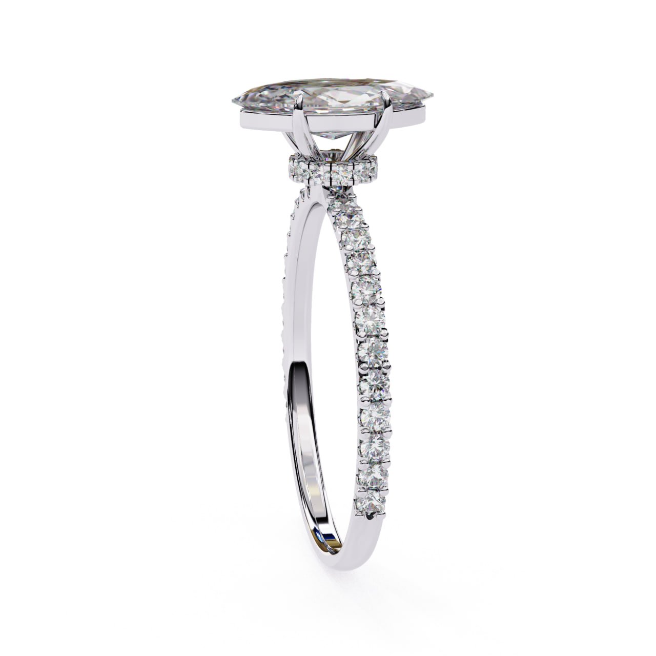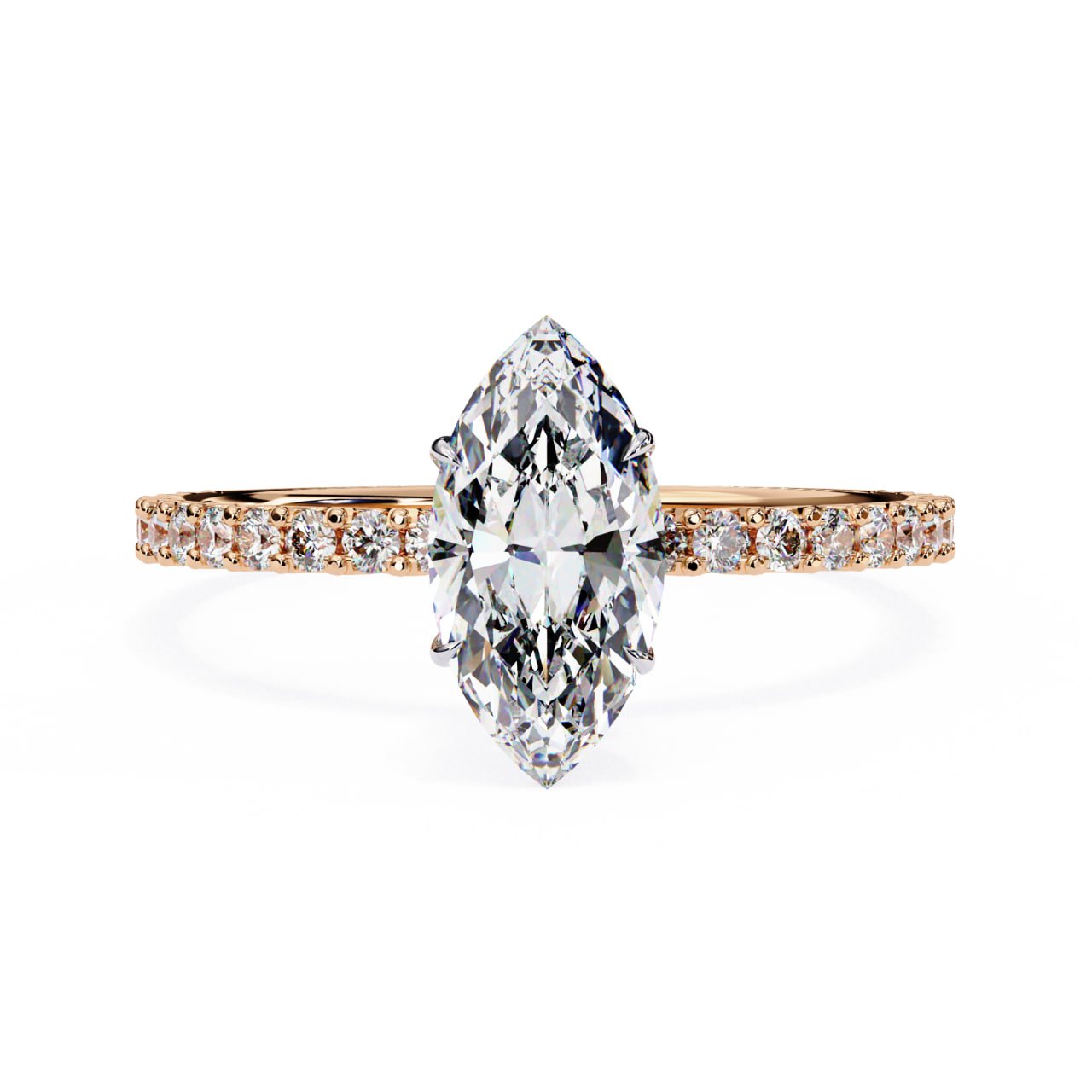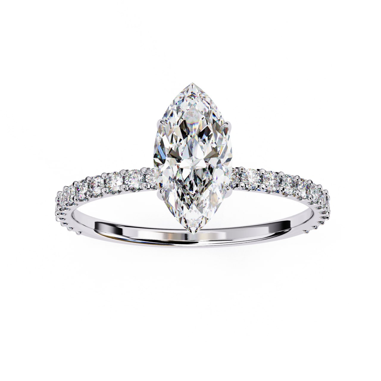 Setting Style: 6-Prong Marquise Solitaire with Pave Band