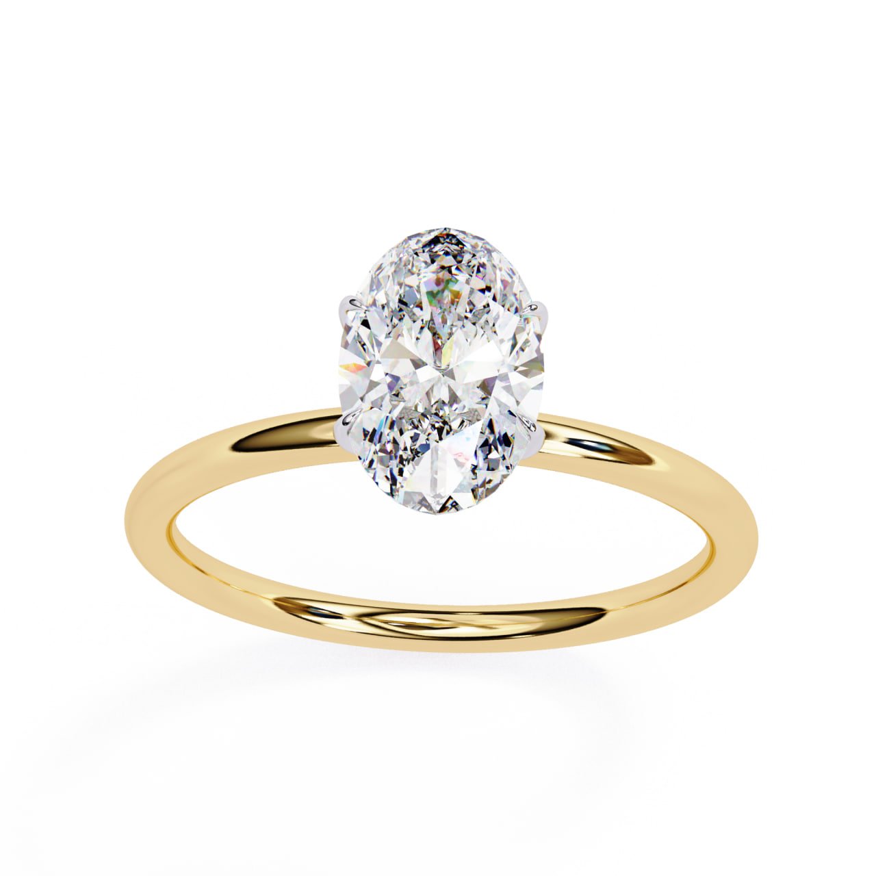 SKU : R091A refined solitaire design featuring a beautifully elongated oval diamond set in a graceful four-prong basket. The slender polished band enhances finger coverage and offers a timeless silhouette with modern appeal. A perfect choice for brides who love understated luxury and maximum brilliance.