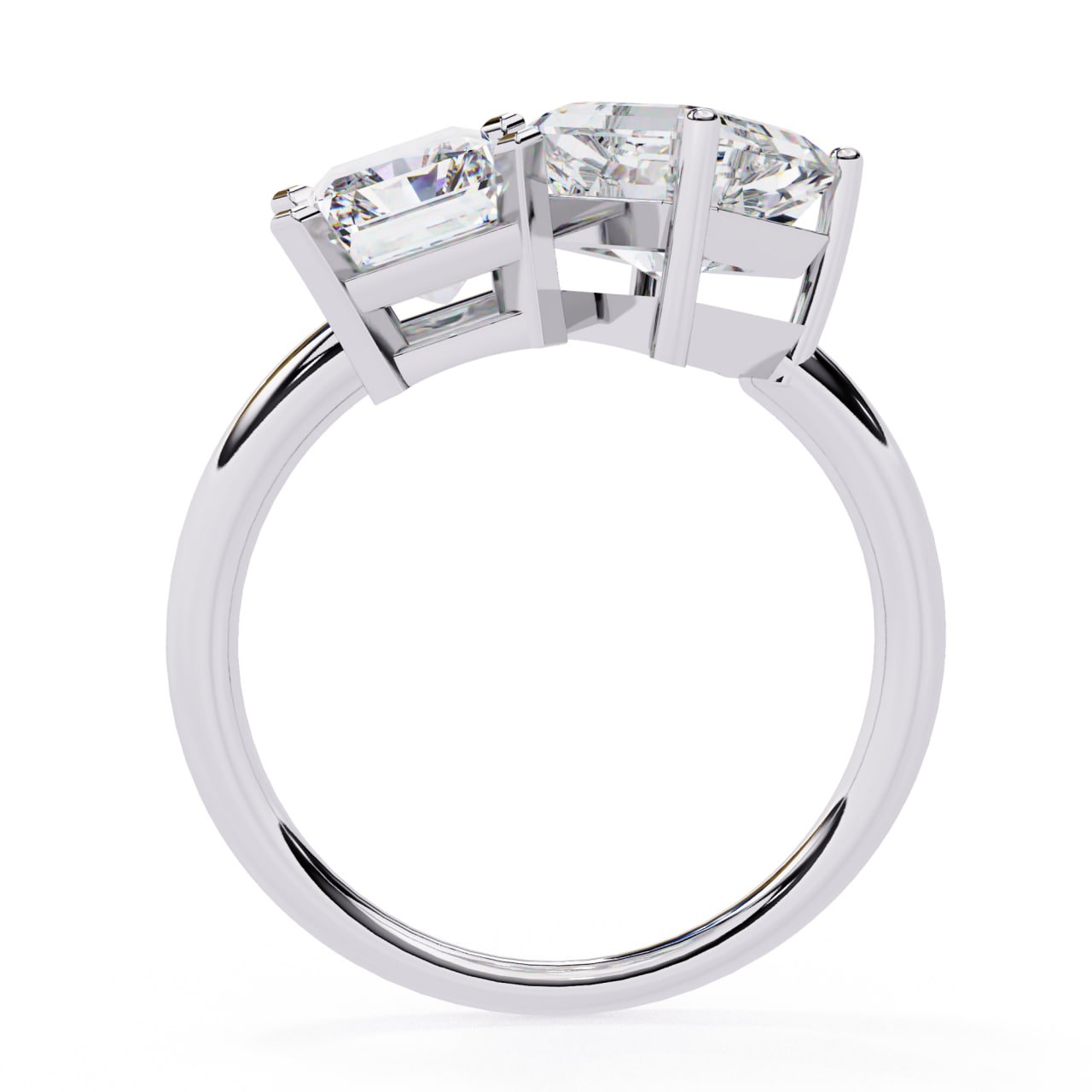 SKU : R273A bold expression of modern luxury, this two-stone diamond ring features a striking combination of radiant and Asscher cut diamonds. The clean geometric lines and perfectly balanced setting create a powerful yet refined aesthetic. Designed for brilliance and architectural beauty, this ring is ideal for those who appreciate contemporary elegance.