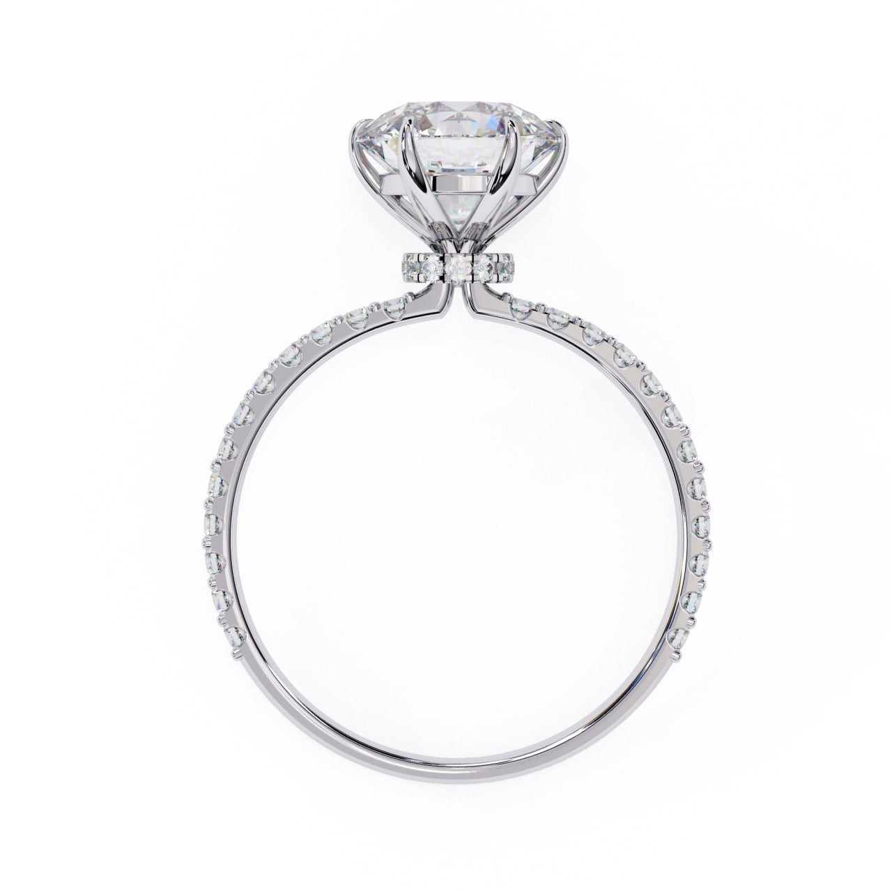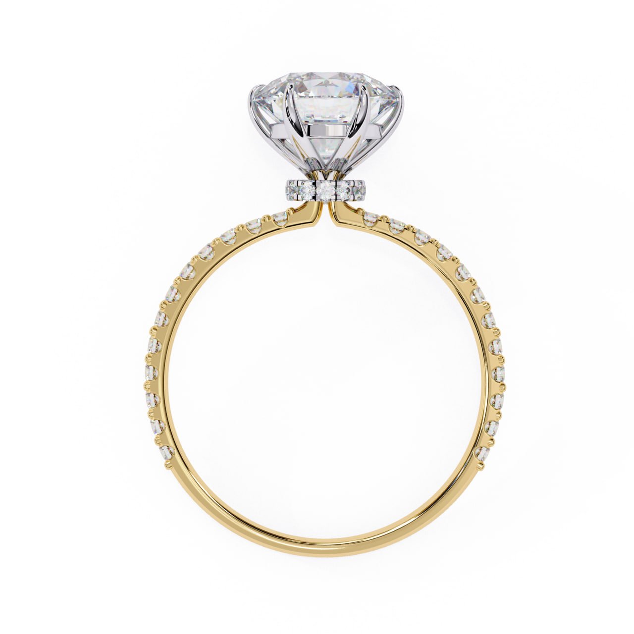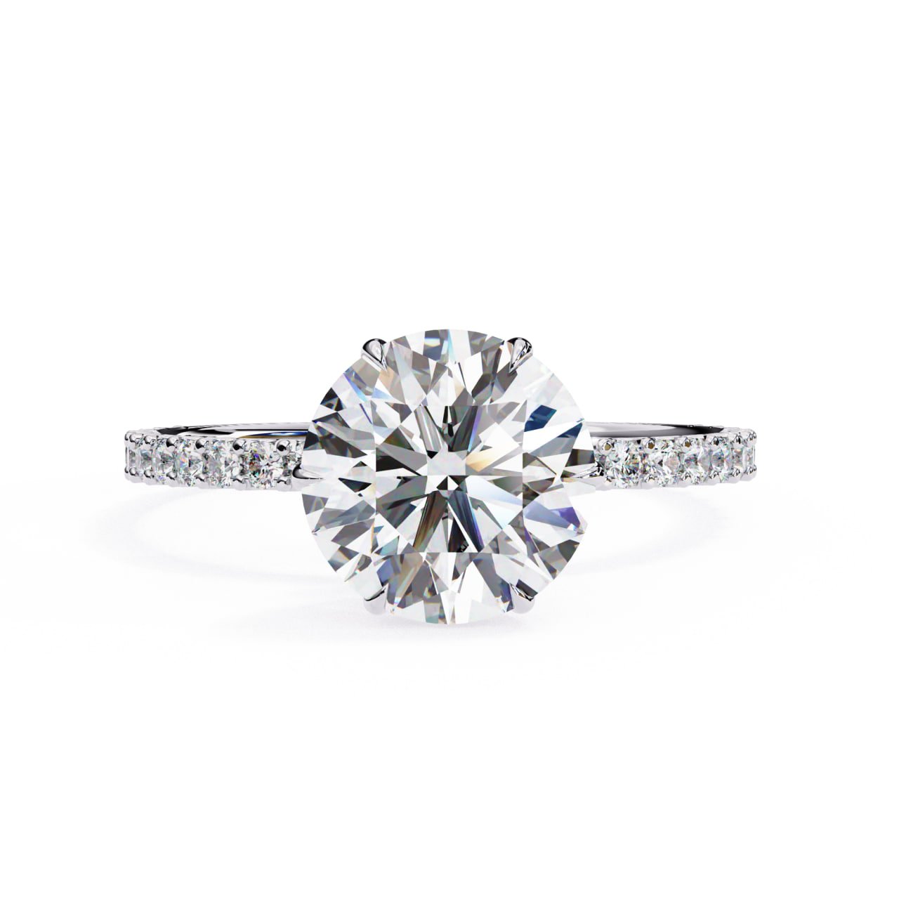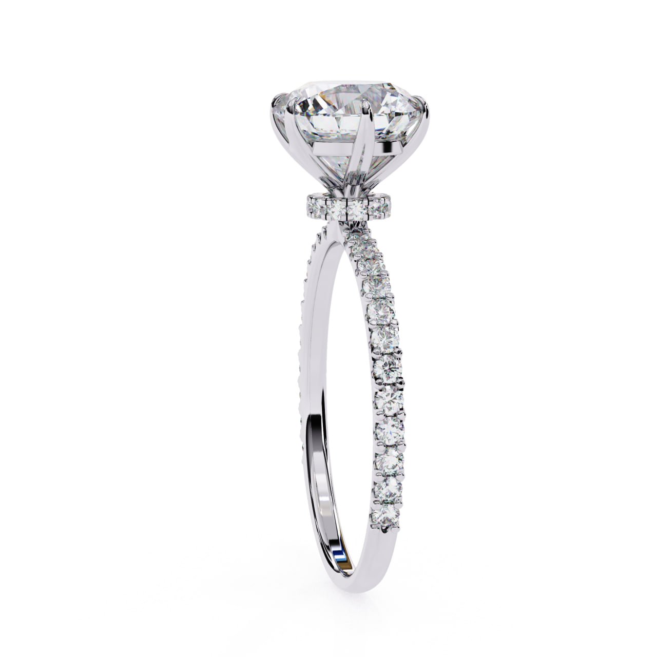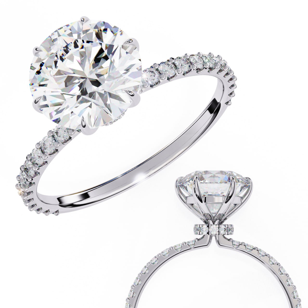 SKU : R106This elegant round solitaire diamond ring features a stunning round brilliant center diamond set in a classic prong setting, enhanced with a shimmering pavé diamond band. The refined proportions and balanced design maximize brilliance while maintaining a timeless, luxurious appeal. Perfect as an engagement ring or a statement piece, this design blends sophistication with everyday comfort.